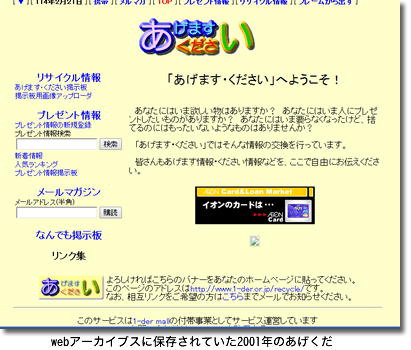 20世紀の終わりから21世紀にかけて登場した、不要品リサイクル掲示板です。